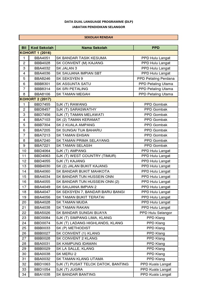 Senarai Sekolah Menengah Dlp Selangor Pdf